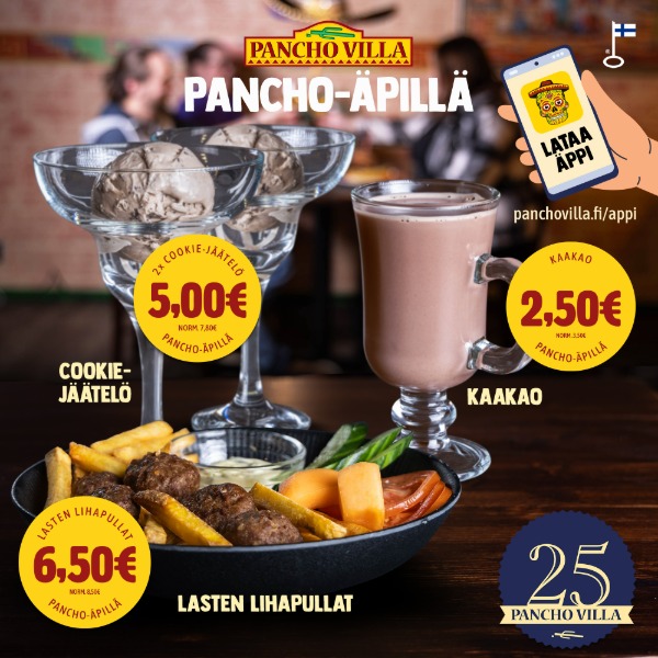 Panchon sovelluksesta löytyy kuukausittain vaihtuvia herkullisia etuja sekä lounaspassi! Kaakao, mehevä coocie jäätelö sekä lasten lihapulla-annos etuhinnoin Panchon sovelluksella ☺ Tervetuloa!