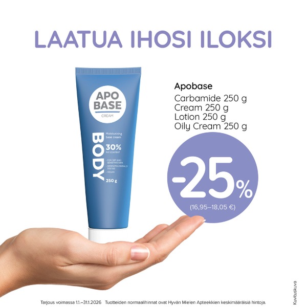 Löydä itsellesi sopiva ihon kosteuttaja Apobasen vaihtoehdoista! Kaikki Apobasen perusvoiteet ovat hajusteettomia sekä väriaineettomia.