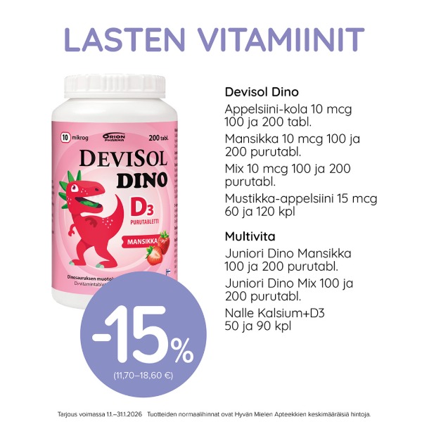 Lapsille talveksi vitamiineja ylläpitämään vastustuskykyä! Tarjouksessa muun muassa D-vitamiineja ja monivitamiineja.